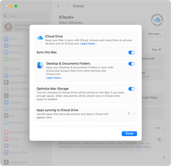 Tích vào Desktop & Documents Folders để đồng bộ hai thư mục này.