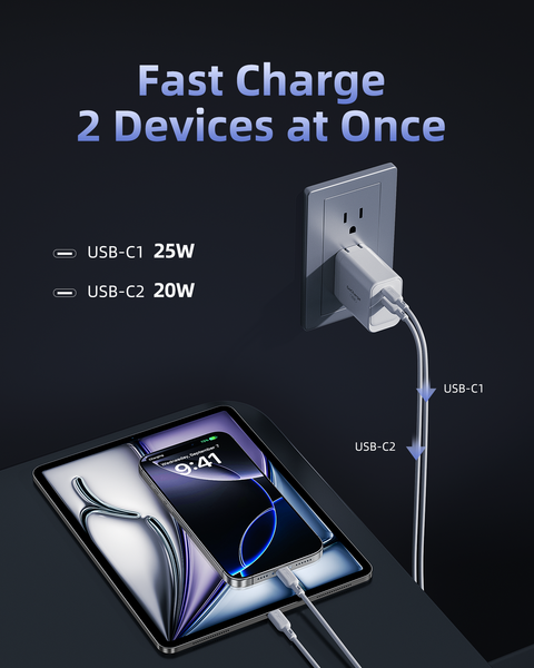 Trang bị hai cổng USB-C giúp bạn sạc đồng thời hai thiết bị, giảm số lượng củ sạc cần mang theo và tối ưu không gian sử dụng.