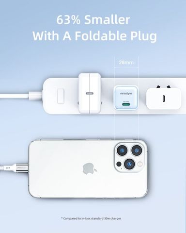 Cục sạc Innostyle Minigo GaN II 30W là bộ sạc nhanh nhỏ gọn ứng dụng công nghệ GaN thế hệ mới, giúp tối ưu hiệu suất sạc mà không cần tăng kích thước. Sản phẩm hỗ trợ chuẩn Power Delivery và PPS, giúp sạc nhanh an toàn cho nhiều thiết bị như điện thoại, tablet, tai nghe không dây và các phụ kiện số khác. Với thiết kế tiện lợi và độ bền cao, đây là lựa chọn sạc nhanh thuận tiện cho cả tại nhà lẫn khi di chuyển.