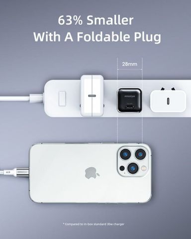 Với công suất 30W, Minigo GaN II sạc nhanh cho smartphone phổ biến hiện nay, hỗ trợ sạc nhanh cho các dòng iPhone/Android và bổ sung năng lượng hiệu quả cho tablet nhỏ, tai nghe hay phụ kiện công nghệ.