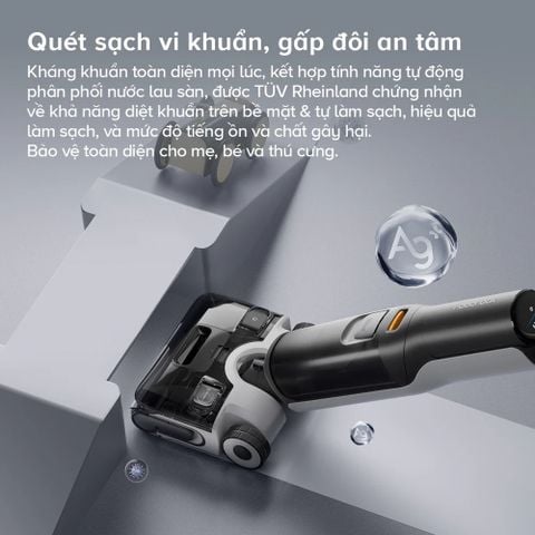Máy hút bụi lau nhà cầm tay Roborock F25 không chỉ là một thiết bị làm sạch mà còn là giải pháp bảo vệ sức khỏe toàn diện. Với cơ chế làm sạch bằng nước nóng 90°C kết hợp hệ thống sấy khô nhanh, máy loại bỏ tới 99.9% vi khuẩn, đảm bảo vệ sinh tuyệt đối cho con lăn và hệ thống bên trong. Đặc biệt, sản phẩm đã đạt chứng nhận từ TUV Rheinland, khẳng định khả năng kháng khuẩn hiệu quả và đạt tiêu chuẩn chất lượng cao. Đây là sự lựa chọn lý tưởng cho gia đình có mẹ bầu, trẻ nhỏ hoặc thú cưng, mang đến không gian sống sạch sẽ và an toàn tối đa.