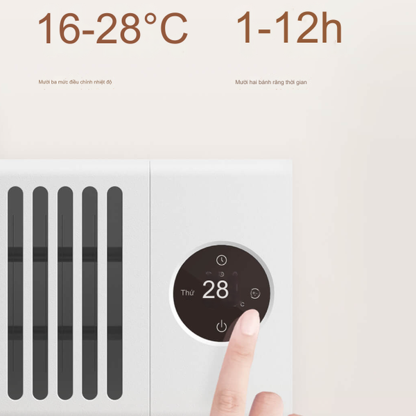 Máy sở hữu thiết kế mảnh mai, không chiếm nhiều diện tích nhưng vẫn phủ nhiệt hiệu quả. Kiểu dáng tinh tế, màu sắc trung tính giúp sản phẩm dễ phối với nội thất hiện đại.