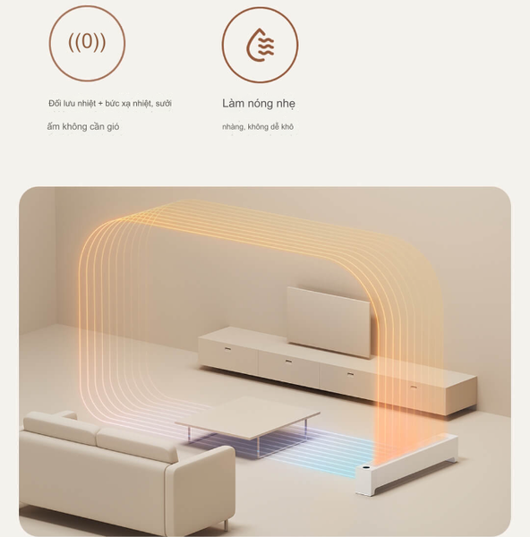 Không sử dụng quạt gió truyền thống nên máy tạo ra nhiệt êm ái, không gây khô da hay thổi bụi trong phòng. Điều này rất phù hợp cho phòng ngủ, phòng làm việc hoặc không gian cần yên tĩnh.