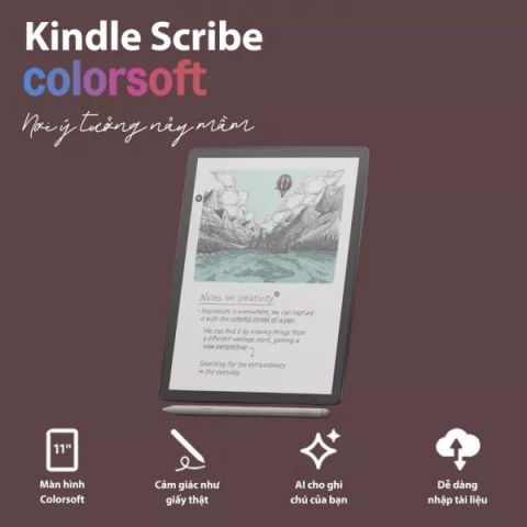 Amazon Kindle Scribe Colorsoft là dòng máy đọc sách cao cấp được nâng cấp với màn hình màu và khả năng ghi chú bằng bút cảm ứng. Không chỉ dùng để đọc ebook, thiết bị này còn đóng vai trò như một cuốn sổ tay kỹ thuật số, giúp người dùng học tập và làm việc hiệu quả hơn.
