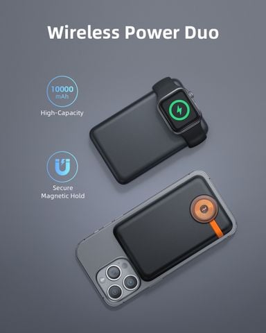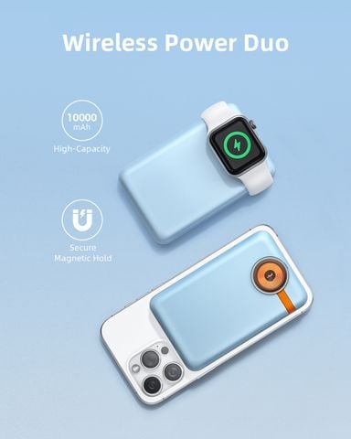 Dung lượng cao 10000mAh: Sạc nhanh Đồng hồ Apple Watch lên đến 22 lần, AirPods lên đến 26 lần và iPhone 14 khoảng 1,8 lần, đồng thời cung cấp thêm 34 giờ phát lại video.