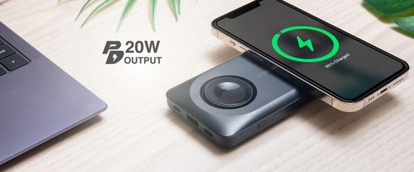 Pin hỗ trợ sạc từ tính MagSafe (Qi2) với công suất lên đến 15W, giúp kết nối nhanh và hiệu quả với iPhone 12 trở lên hoặc các thiết bị tương thích MagSafe mà không cần dùng cáp.