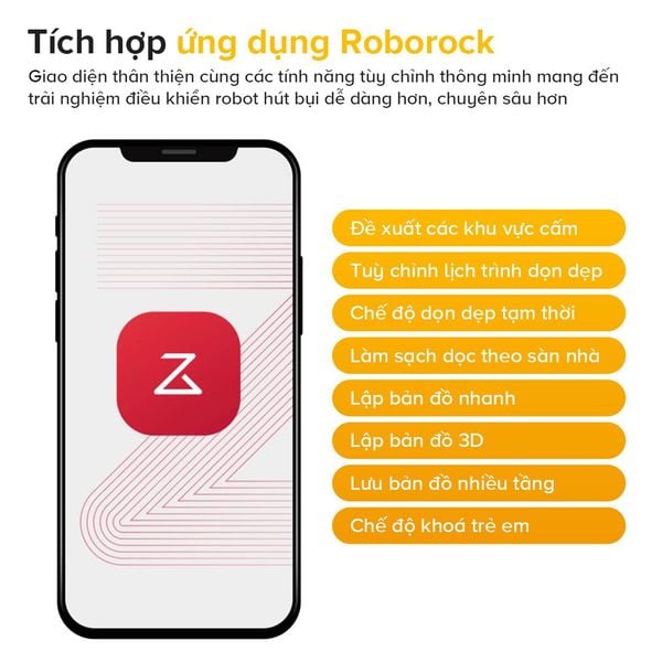 Người dùng có thể tùy chỉnh lịch dọn, chọn phòng, thiết lập vùng cấm hoặc theo dõi tình trạng làm sạch trực tiếp trên ứng dụng. Giao diện đơn giản, thân thiện, dễ sử dụng cho mọi thành viên trong gia đình.